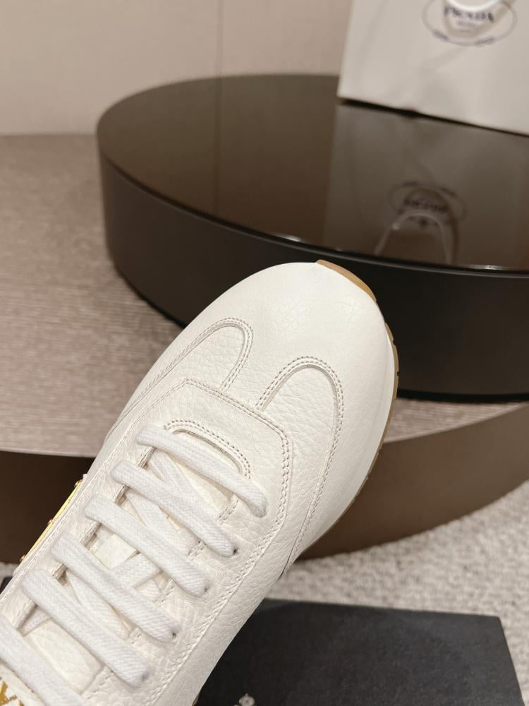يتميز حذاء PRADA الرياضي بجودته العالية والمواد المتينة، مما يضمن تحمله لفترة طويلة واستمراره في الأداء الأمثل. يتم تصميمه بعناية فائقة وتفاصيل دقيقة، مع تركيز كبير على الراحة والدعم للقدم.