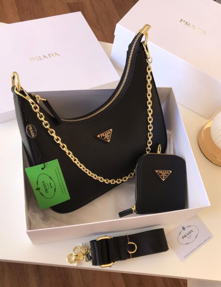 • شعار PRADA الأيقوني: يبرز الهوية المميزة للعلامة.