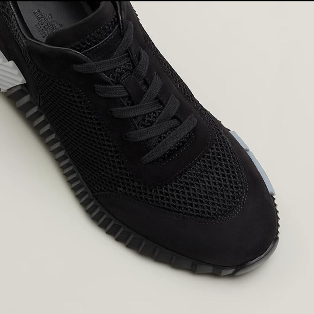 استعد للتميز في إطلالتك مع سنيكرز هيرميس باونسينج المصمم بأسلوب يجمع بين الفخامة والأداء الرياضي. يتميز الحذاء بجزء علوي مصنوع من مزيج فخم من جلد العجل الناعم وجلد الماعز السويدي، مما يمنحه مظهراً أنيقاً وعصرياً في الوقت ذاته.
